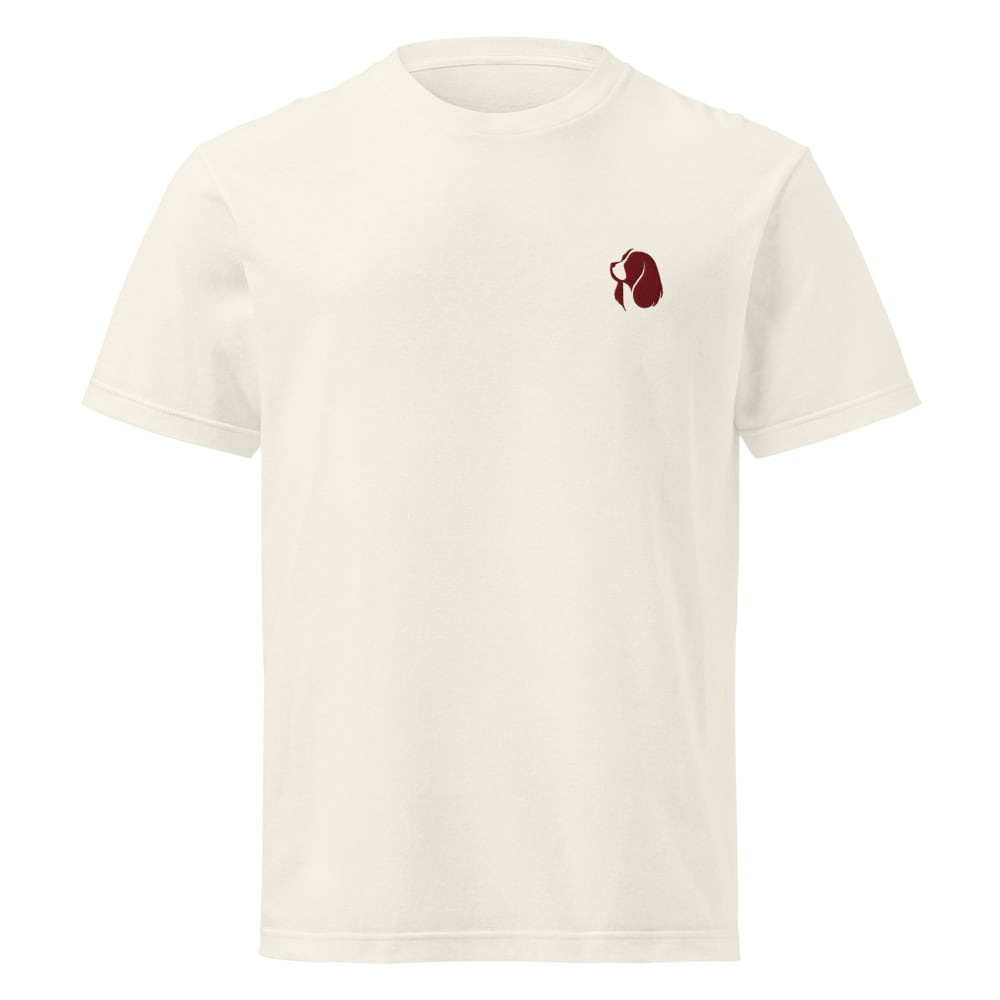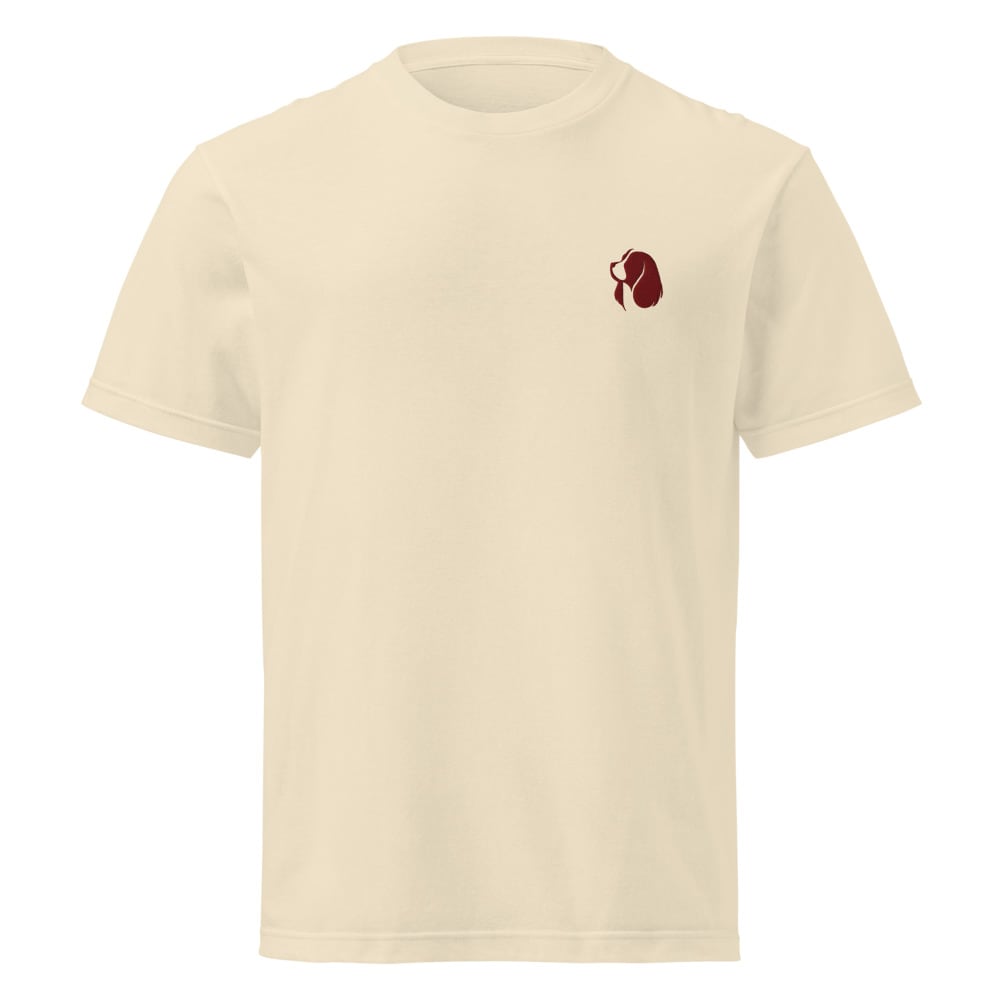 胸元に小さなキャバリアのエンブレム刺繍をあしらった、ミニマルで上品なTシャツ。